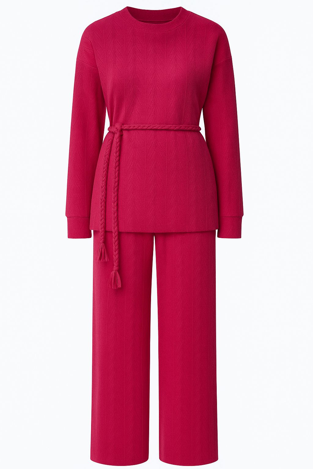 Теплый, уютный и лаконичный костюм для ежедневных образов. Простой крой придает костюму изысканный и утонченный вид в стиле Old money. Джемпер костюма свободного силуэта со спущенным плечом. Брюки прямого кроя с поясом на резинке и отрезными карманами. В комплекте съемный пояс-завязка сплетена косой.