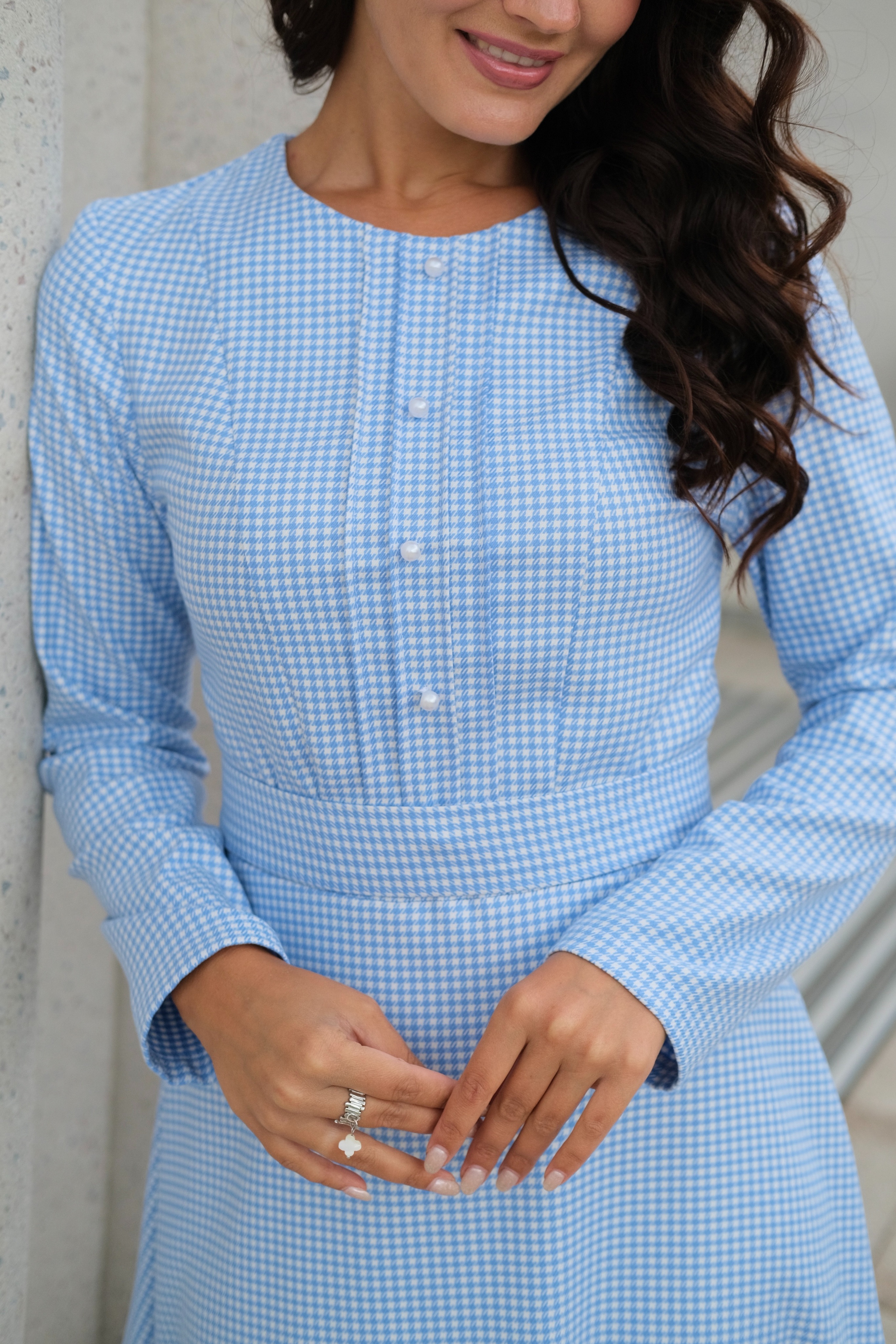 Наша самая популярная модель! Платье строгое, но при этом женственное. Пуговицы-жемчужины создают романтичное настроение. Платье отрезное по талии, юбка с кроем А-силуэта. В комплекте съемный пояс. По спинке потайная молния. Прямой втачной рукав. Добавьте к образу наши съемные кружевные манжеты и кружевной воротник.